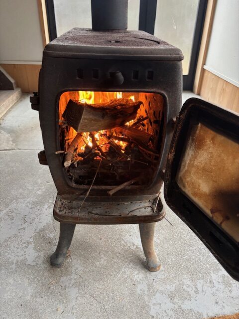 週末喫茶まがり道、薪ストーブつけて営業です